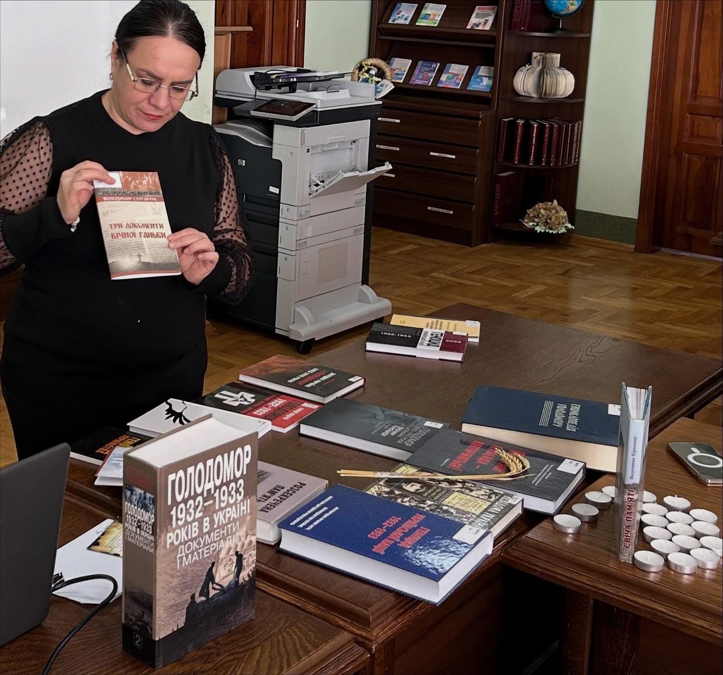 Присутні усвідомили масштаби пережитого лиха, дізналися деталі про його причини та наслідки, почули свідчення очевидців тих страшних років. Завідувачка студентського читального залу Ірина Любезна представила тематичну виставку, яка доповнила атмосферу скорботи й пам’яті.