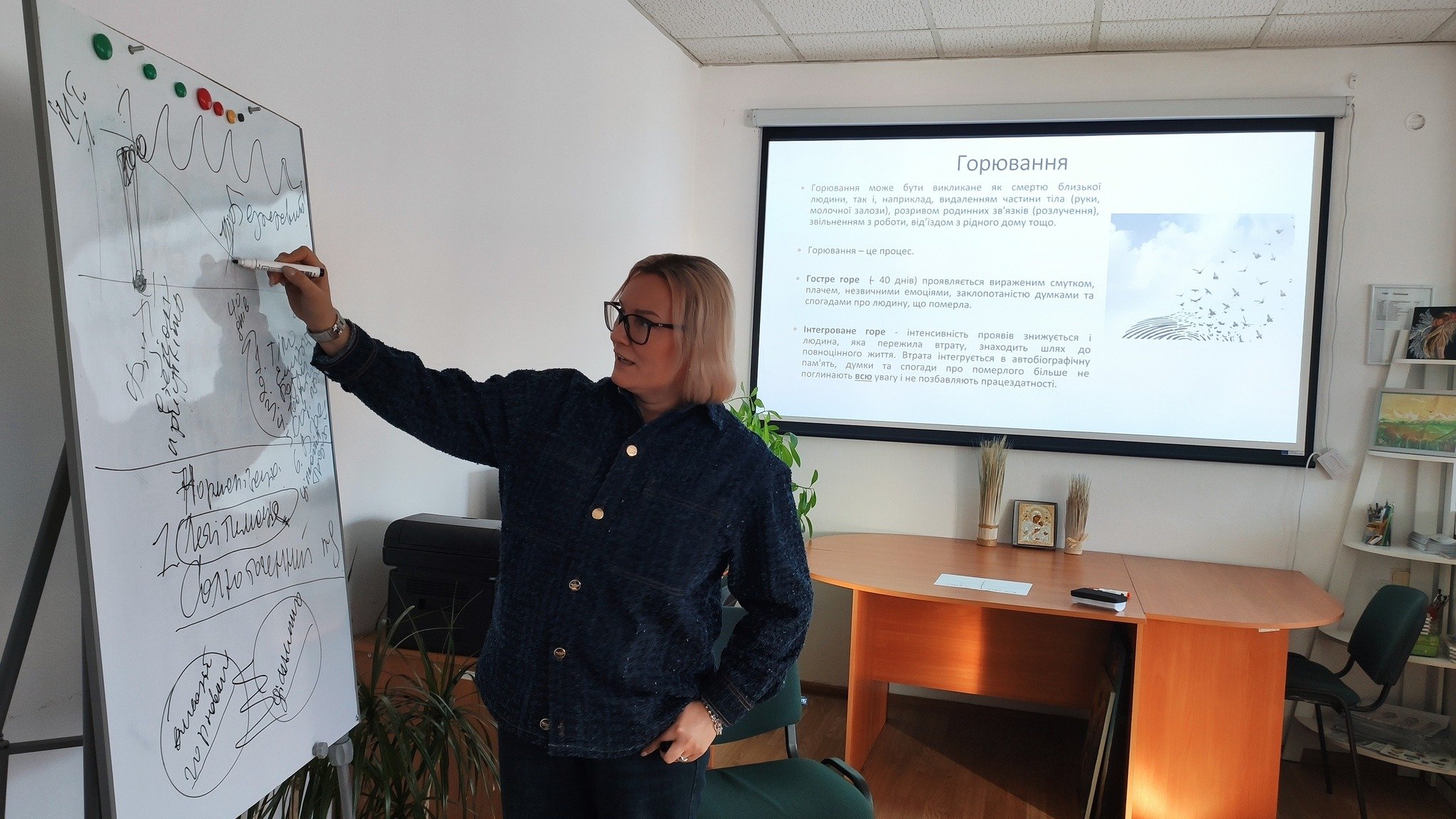 Захід провела представниця Ізраїльської коаліції з роботи з травмою в Україні Наталія Макієнко, яка поділилася знаннями та практичними підходами щодо того, як підтримувати людей у період втрати, як говорити з тими, хто переживає сильний біль, та як бути для них безпечною опорою. Представлений досвід, заснований на ізраїльських кризових протоколах і багаторічній практиці, став цінним ресурсом для учасників.