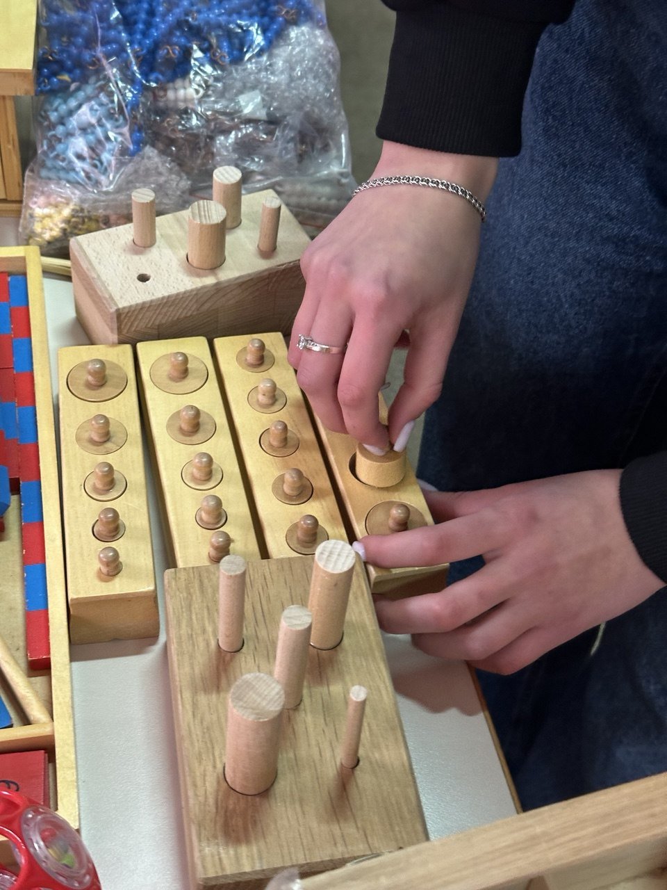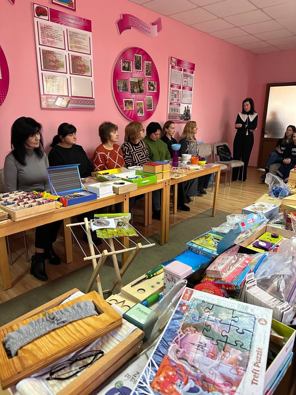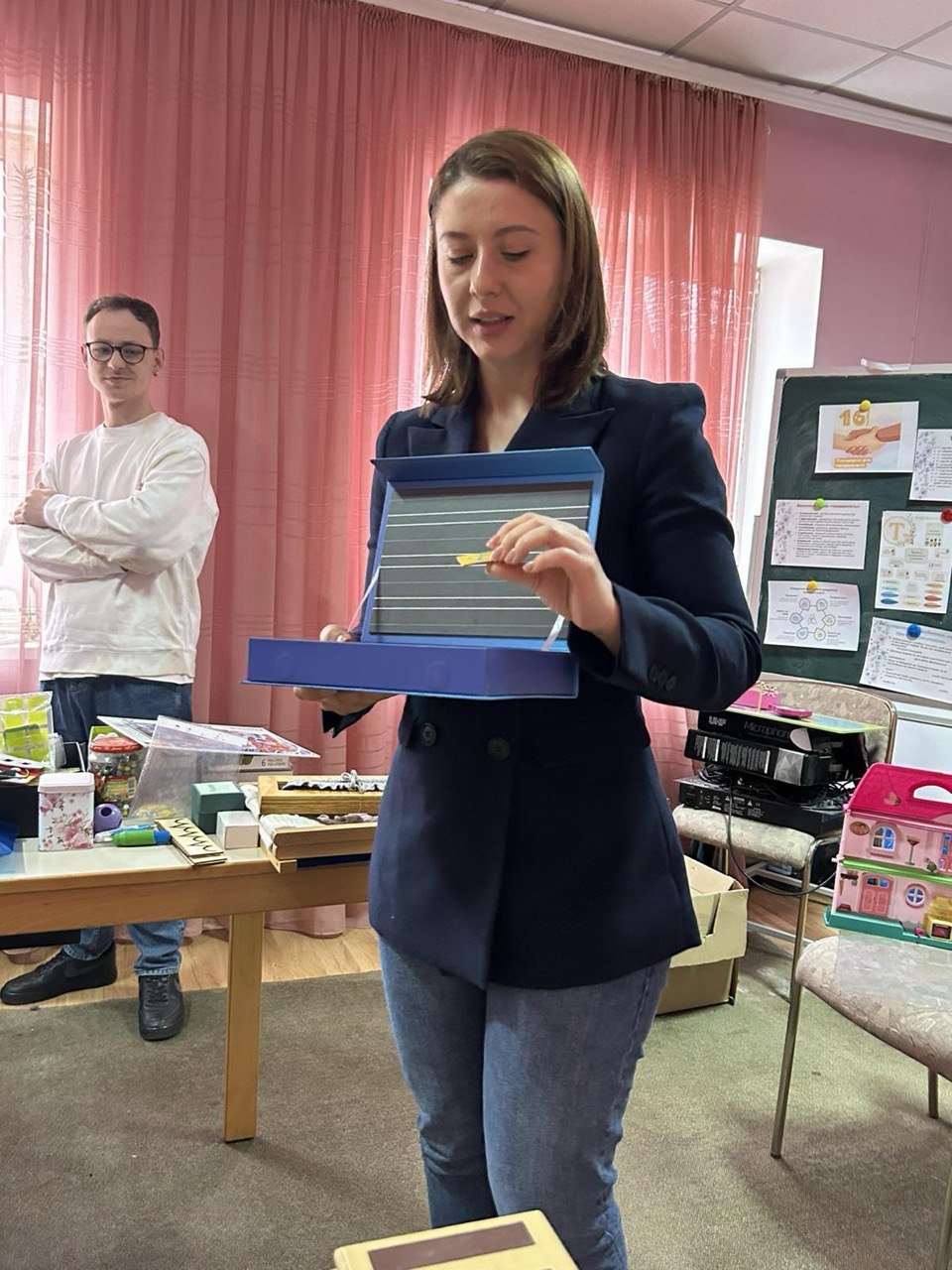 Педагогічний колектив навчально-реабілітаційного центру та студенти освітніх програм «Дошкільна освіта. Інклюзивна освіта» і «Початкова освіта» практично працювали з такими відомими Монтессорі-посібниками: «Рожева піраміда», «Кольорові вежі Монтессорі», «Монтессорі-циліндри», «Підставка з кільцями», «Конструктивні трикутники, шестикутники, прямокутники», «Математичні штанги», «Геометричні тіла», «Шорсткі таблиці й цифри», «Рамки для шнурування та застібання» та інші.