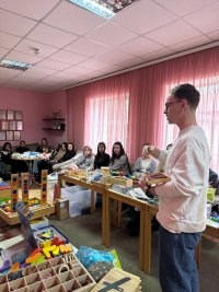 Доповідь Ростислава Руденського, доктора філософії, старшого викладача кафедри освітології і педагогіки, була присвячена розвитку пізнавальної активності та конструктивних навичок дітей засобами освітньої технології Марії Монтессорі.
