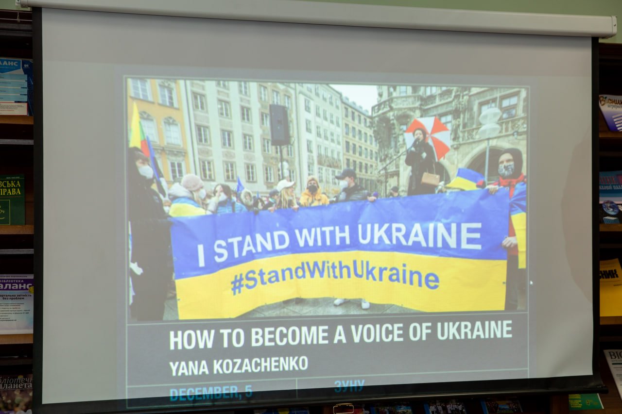 Спікерка – мовна тренерка перших осіб країни, очільниця мовної агенції EverEnglish та сертифікована тренерка Кембриджського університету Яна Козаченко. Вона поділилася експертним баченням використання англійської мови як дієвого інструменту адвокації інтересів України на міжнародній арені. Під час тренінгу п. Яна наголошувала, що сьогодні світ щоденно обговорює Україну, і саме від того, хто і як формує цей наратив, залежить наше місце у світовій політиці.