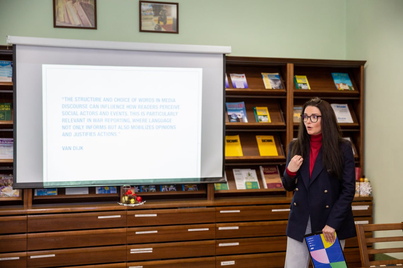 Практичний тренінг був спрямований на те, щоб навчити учасників підсилити позиції України, не залишаючи простору для чужих інтерпретацій чи послаблення меседжів. Учасники розбирали живі кейси зі сфери роботи з українськими політиками та громадами, аналізували реальні формулювання англійською мовою, що використовуються на закордонних новинних ресурсах.