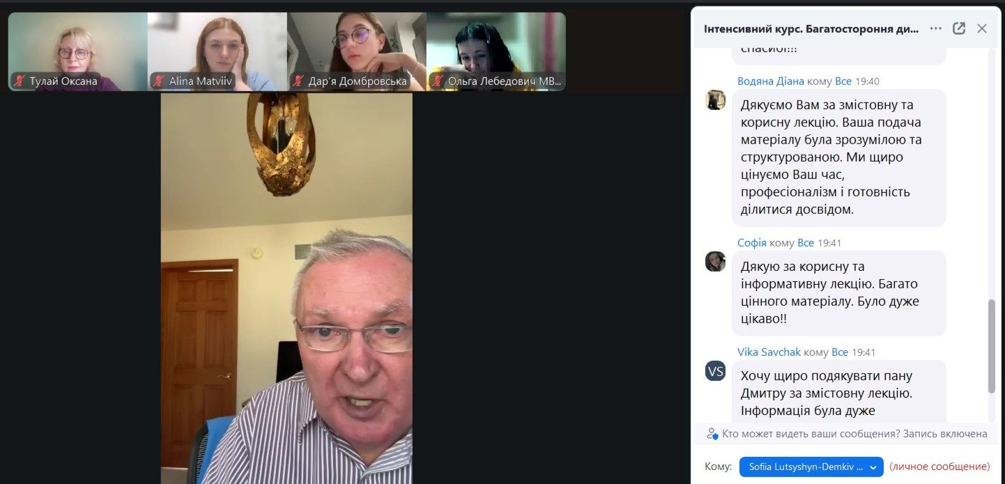 Важливою складовою інтенсиву стала активна взаємодія студентів із лектором. Окрім лекцій, учасники мали змогу обговорювати історичні й сучасні кейси, ставити запитання та отримувати виважені професійні відповіді. Поєднання ґрунтовної теоретичної бази з практичним досвідом дипломата дозволило глибше усвідомити, як історичні процеси та міжнародне право формують механізми сучасної багатосторонньої дипломатії.
