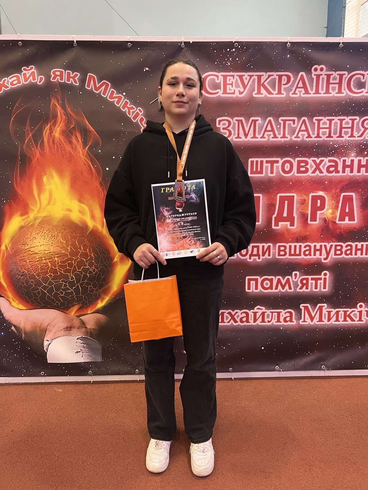 Бронзову нагороду серед дівчат вікової категорії U18 у штовханні ядра вагою 3 кг виборола Альбіна Піліх, студентка ВСП «ФКЕПІТ ЗУНУ», з результатом 11 м 78 см.