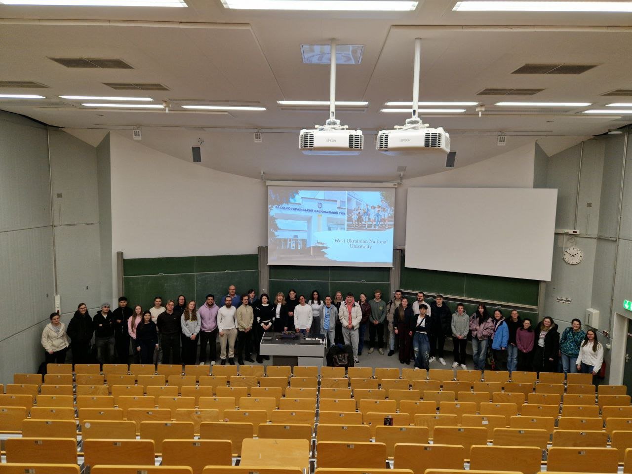 На запрошення професора, д-ра Томаса Шрьодера (Prof. Dr. Thomas Schröder), у межах роботи міжнародного центру культури та розвитку ЗУНУ, з 5 по 9 січня 2026 року студенти спеціальності В11 "Філологія" Аделія Кухарчук, Христина Казмірчук, Андрій Стравський, Святослав Білінський та Віктор Слабодух разом з професором кафедри іноземних мов та інформаційно-комунікаційних технологій Ольгою Царик взяли участь у Winter School в TU Dortmund на тему «Deutsch-Ukrainische Perspektiven auf Demokratiebildung, Nachhaltigkeit und Digitalisierung».