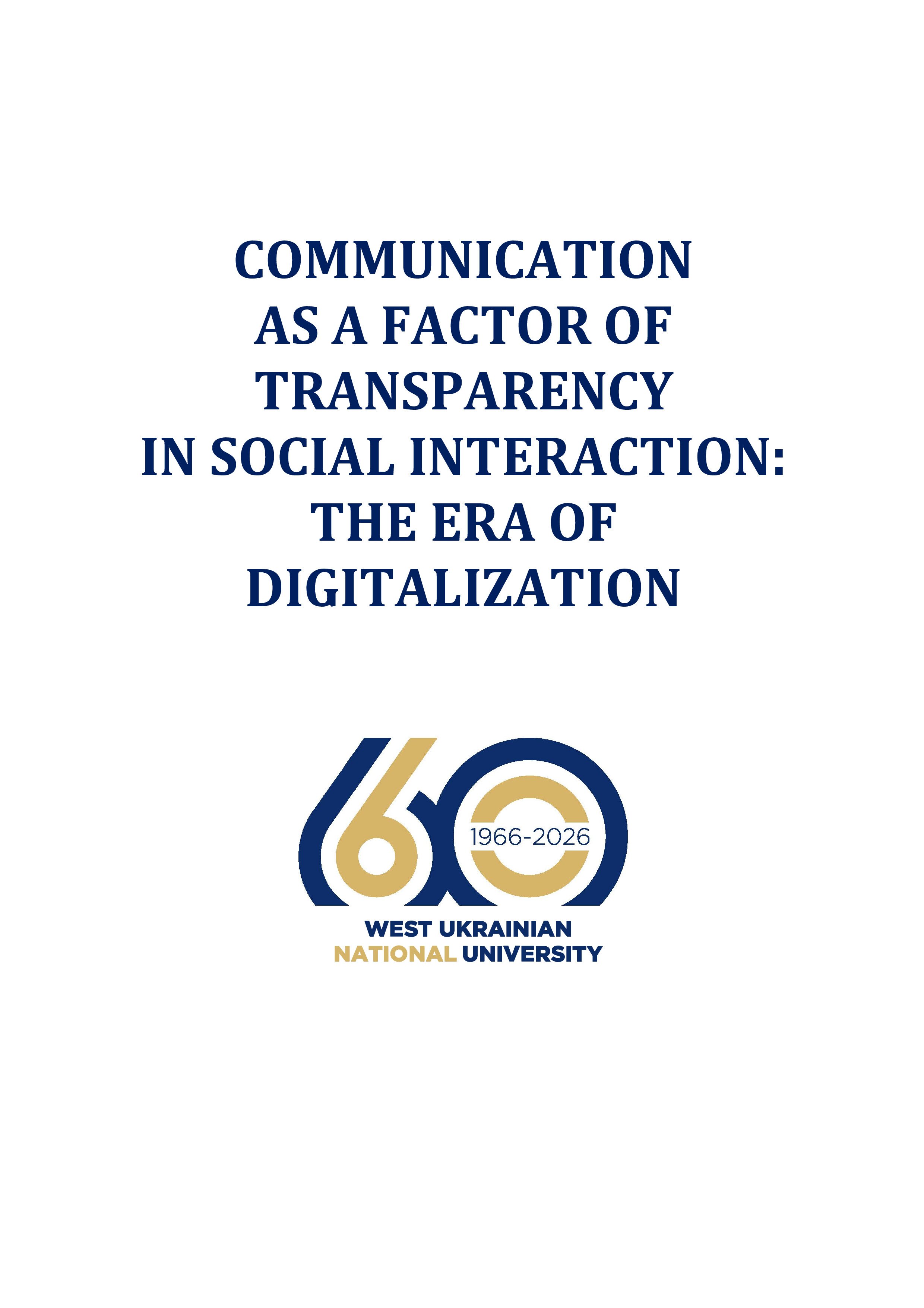 Загалом книжка презентує різнобічні реадаптовані й конструктивно відрефлексовані матеріали учасників IV Міжнародної науково-практичної конференції «Communication as a Factor of Transparency of Social Interaction: The Era of Digitalization», організованої навчально-науковим центром комунікацій ЗУНУ спільно з кафедрою фінансів ім. С.І. Юрія, кафедрою економічної кібернетики та інформатики та ГО «Міжнародний інститут комунікацій в межах україно-американського STEM-проєкту. Серед співорганізаторів конференції – провідні університети, наукові центри, громадські організації та міжнародні інституції з 15 країн світу.