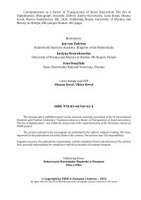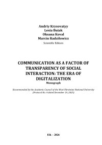Побачила світ українсько-польська наукова монографія «Communication as a Factor of Transparency of Social Interaction: The Era of Digitalization», присвячена осмисленню ролі комунікації в умовах цифрової трансформації сучасного суспільства.