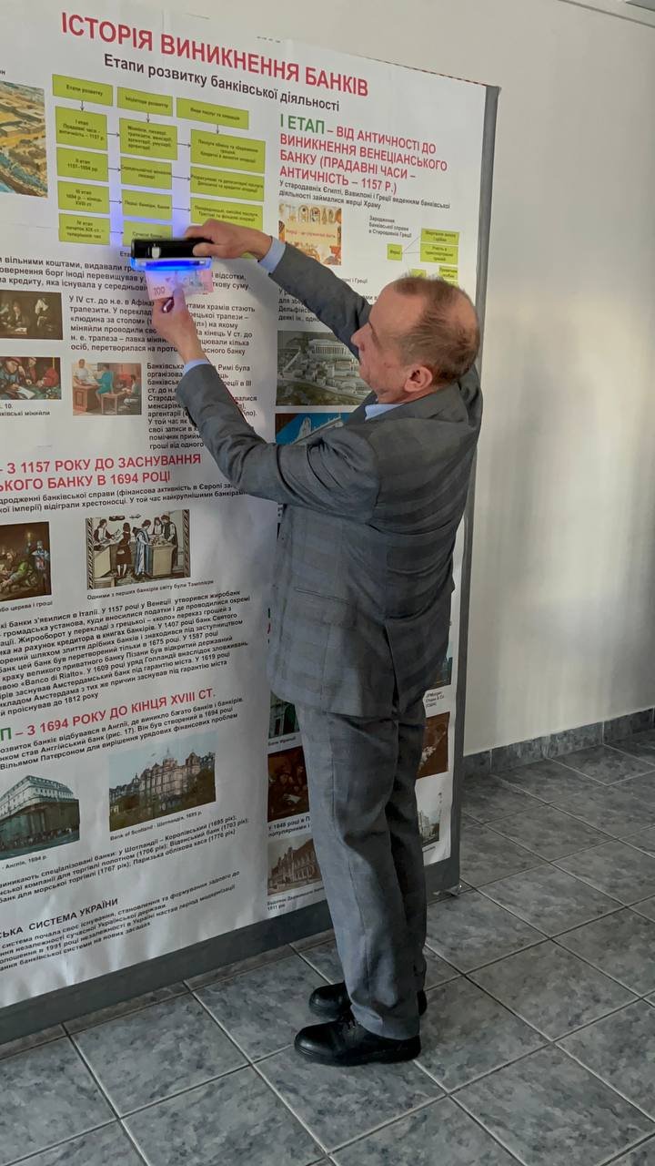Особливий інтерес у відвідувачів викликали експонати у вигляді брикетів утилізованих банкнот номіналом 10 і 100 злотих Національного банку Польщі. Школярі також мали змогу ознайомитися з роботою портативного детектора валют Bill Checker DL-01, який використовується для перевірки справжності банкнот.