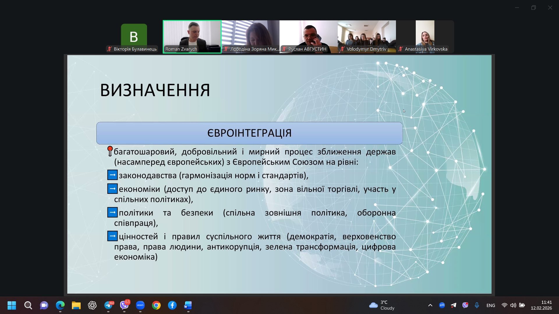 Значну частину семінару було присвячено євроінтеграції як багаторівневому процесу зближення з Європейським Союзом, що передбачає гармонізацію законодавства, поглиблення економічної співпраці та впровадження спільних стандартів і політик. У цьому контексті наголошувалося, що європейська інтеграція сприяє розвитку міжнародної торгівлі, інноваційного потенціалу та економічної стабільності, водночас вимагаючи від держави послідовних реформ і стратегічного бачення.