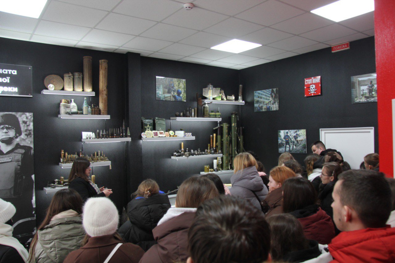 Окрему увагу під час зустрічі було приділено питанням протимінної безпеки. Зокрема, завідувачка музею Наталія Сидорчук акцентувала на ризиках, пов’язаних із вибухонебезпечними предметами, роз’яснила алгоритм дій у разі виявлення підозрілих об’єктів та наголосила, що потенційна небезпека може існувати не лише в районах активних бойових дій, а й поза їх межами, тому поінформованість, уважність і дотримання правил безпеки є необхідними для збереження життя та здоров’я громадян.