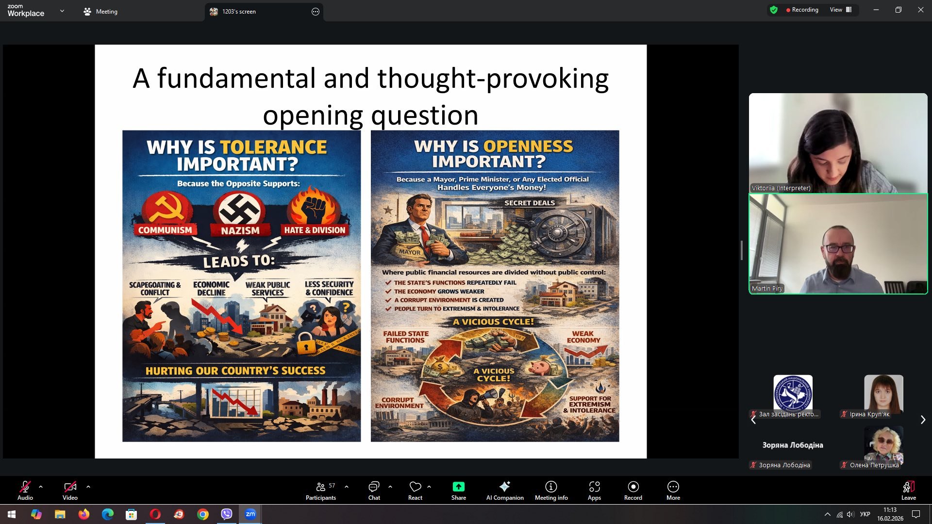 Лектор у своїй презентації акцентував увагу на ключових викликах сучасної демократичної держави, правових та фінансових механізмах існування країни, а також розкрив специфіку конкретних рішень щодо формування толерантності та відкритості в суспільстві.