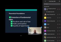 У своїй доповіді фахівець зосередився на людській гідності та рівності перед законом, захисту прав громадян, верховенству права та плюралізму думок. Також спікер наголосив на важливості розвитоку «зеленої економіки».
