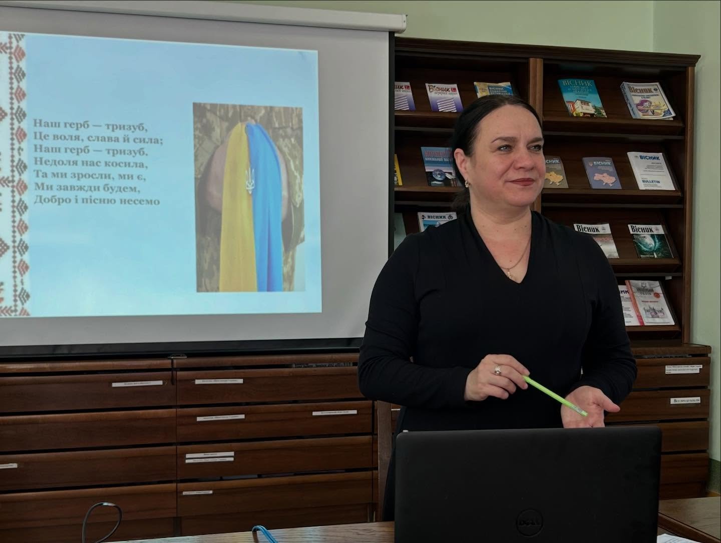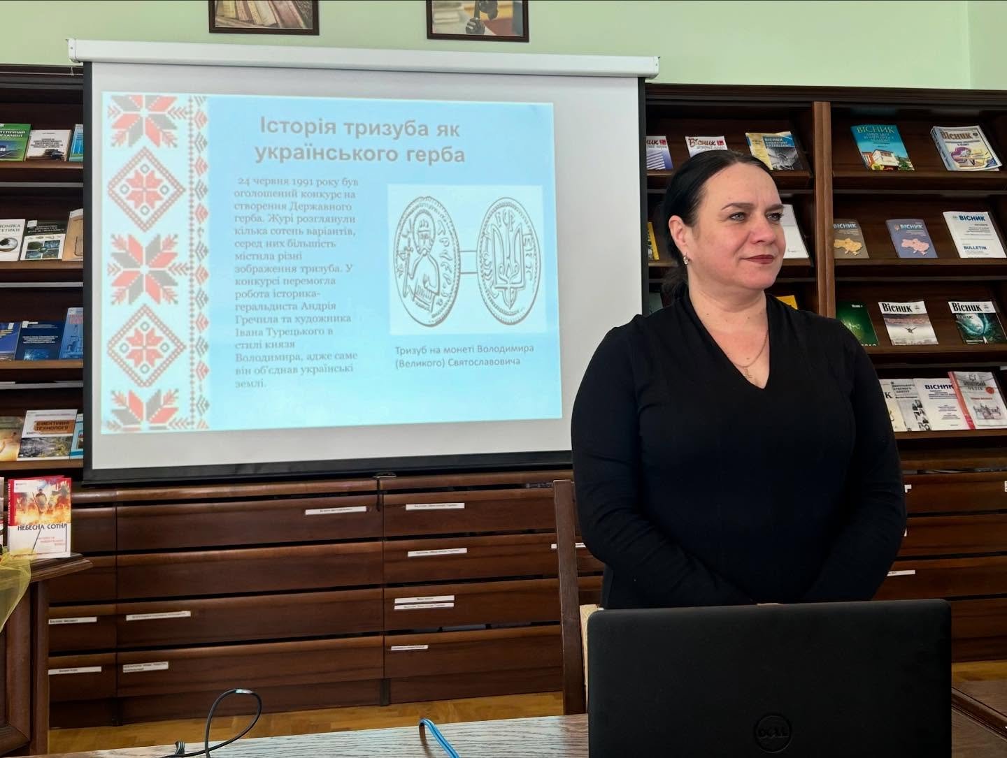 Також Ірина Любезна презентувала тематичну книжкову виставку, яка містила добірку книг, що розповідають про історію державних символів, а також про шлях України до незалежності.