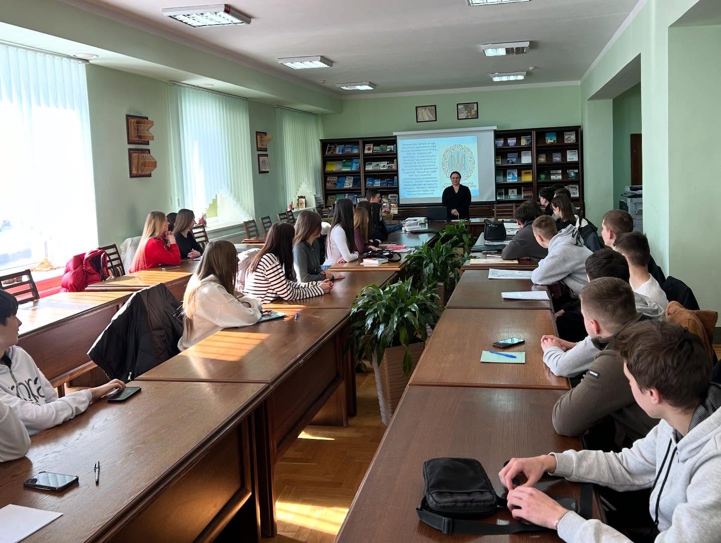19 лютого українці відзначають 34-ту річницю від дня затвердження Державного Герба України. Ця дата стала нагодою для студентів ННІМВ ім. Б. Д. Гаврилишина і молоді навчально-наукового інституту інноватики, природокористування та інфраструктури зібратися у читальному залі бібліотеки ім. Л. Каніщенка на історичну годину «Тризуб крізь віки: символ державності України» та інтелектуальну гру «Святиня народу: історія Дерджавного Герба».