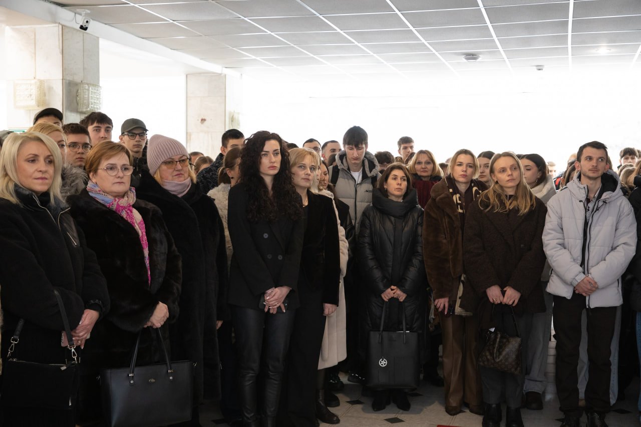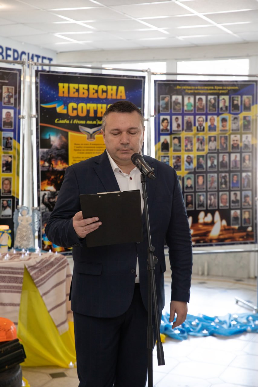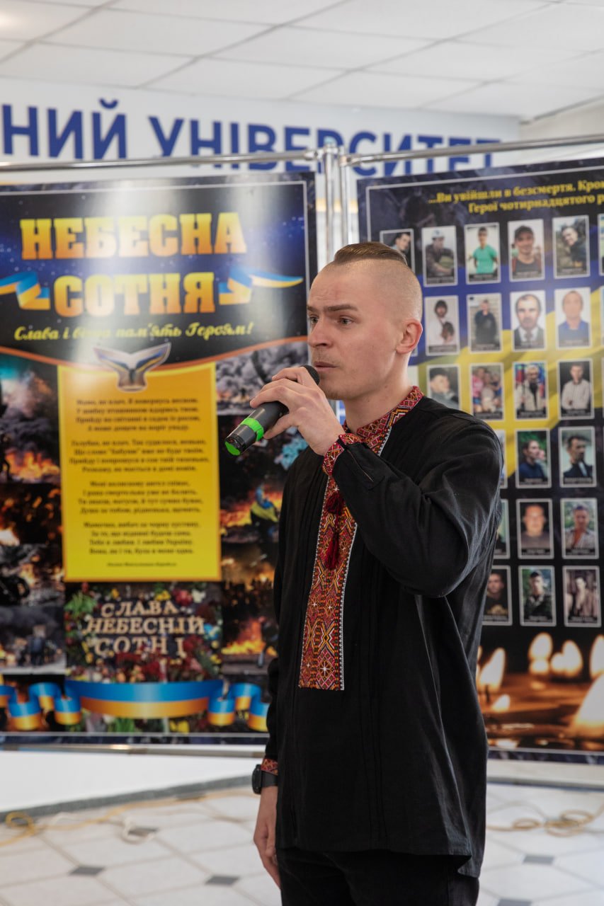 Сьогодні серця українців продовжують битися в ритмі боротьби за незалежність. Університетська спільнота згадала гасла Революції гідності та імена тих, хто віддав життя за Україну. Особливі слова вдячності та пам’яті прозвучали на честь Героя Небесної сотні, випускника, працівника університету Тараса Слободяна. Після завершення навчання він продовжував наукову роботу в аспірантурі та готувався до захисту кандидатської дисертації. Він пожертвував власним життям за свободу нашої держави.