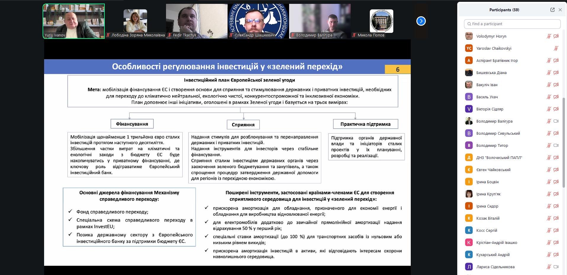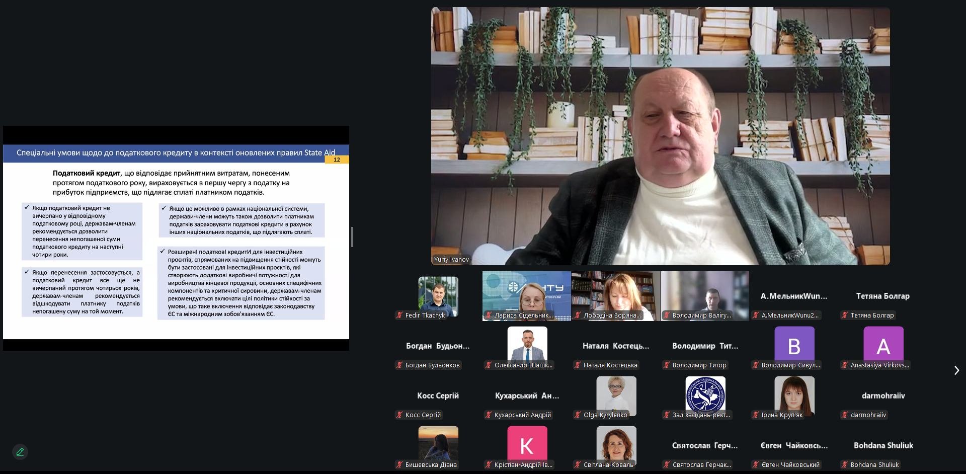 У межах авторського проєкту доктора економічних наук, професора Андрія Крисоватого «Студії публічних фінансів» у Західноукраїнському національному університеті відбулась лекція за участю доктора економічних наук, професора, головного наукового співробітника Науково-дослідного центру індустріальних проблем розвитку НАН України, експерта International Bureau of Fiscal Documentation (Netherlands), заслуженого економіста України Юрія Борисовича Іванова на тему «Фінансові аспекти відновлення України в контексті «Сlean Industrial Deal».
