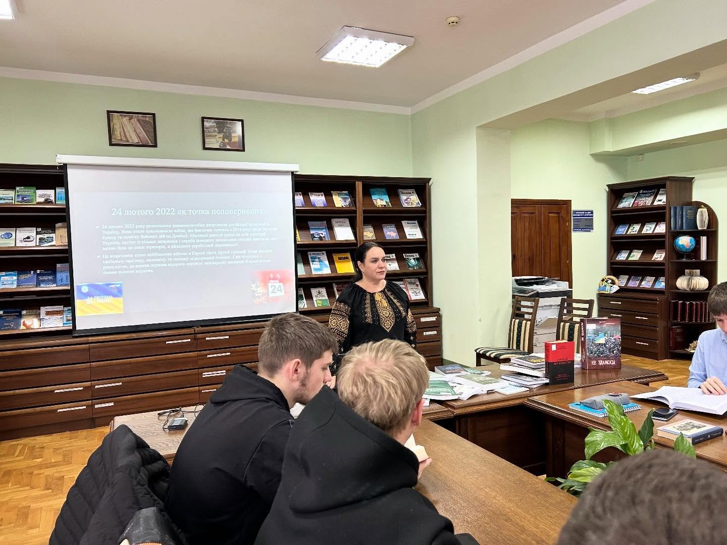 У бібліотеці ім. Л. Каніщенка ЗУНУ відбулася виховна година «Україна крізь біль війни – сильна, незламна, освічена…».