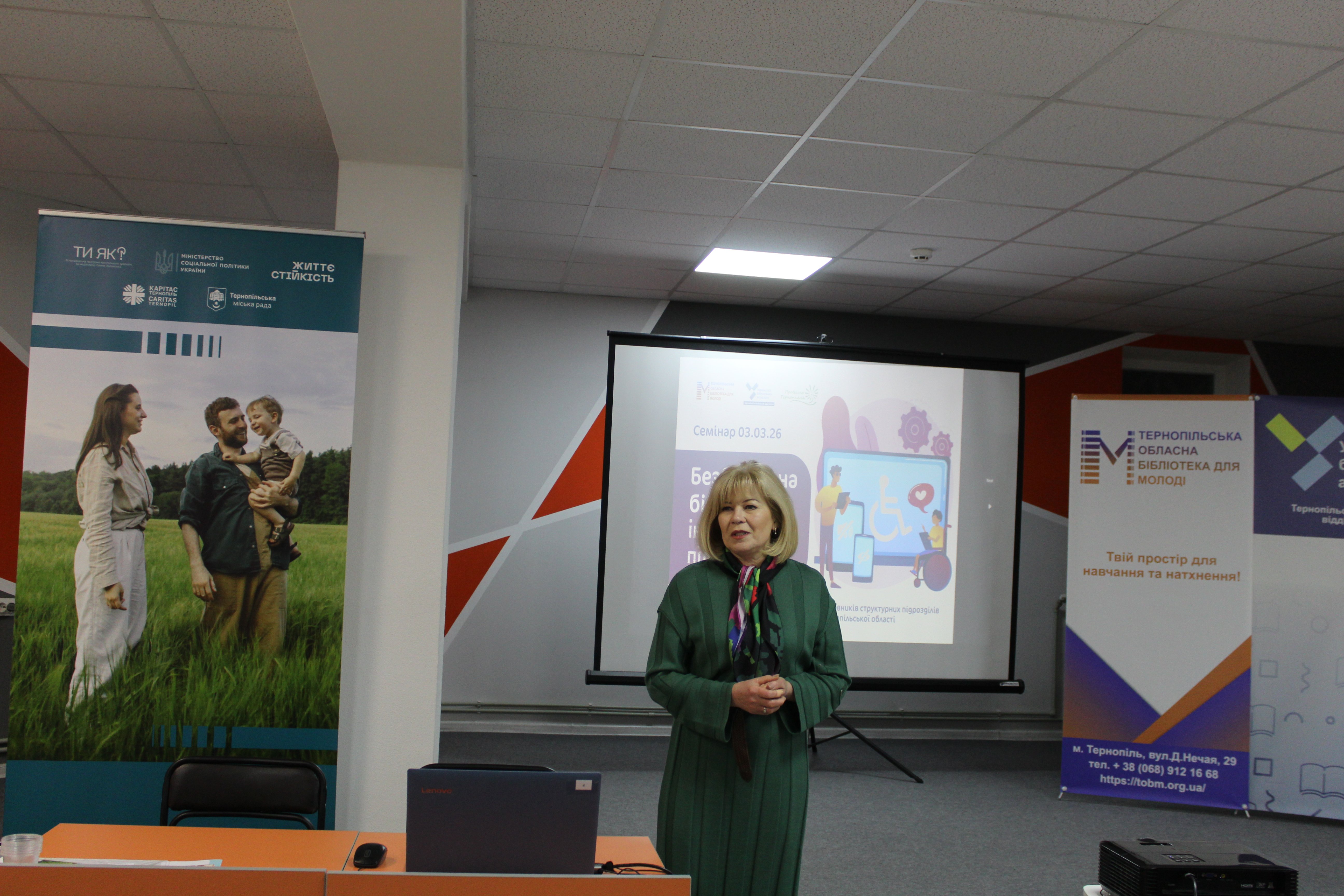 У Тернопільській обласній бібліотеці для молоді відбувся семінар «Безбар’єрна бібліотека: інклюзивний підхід у дії», присвячений обговоренню сучасних підходів до створення доступного культурного й освітнього простору для всіх категорій відвідувачів. Захід об’єднав працівників бібліотек, освітян, представників громадських організацій та фахівців, які працюють у сфері інклюзії та безбар’єрності.