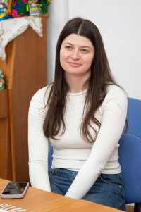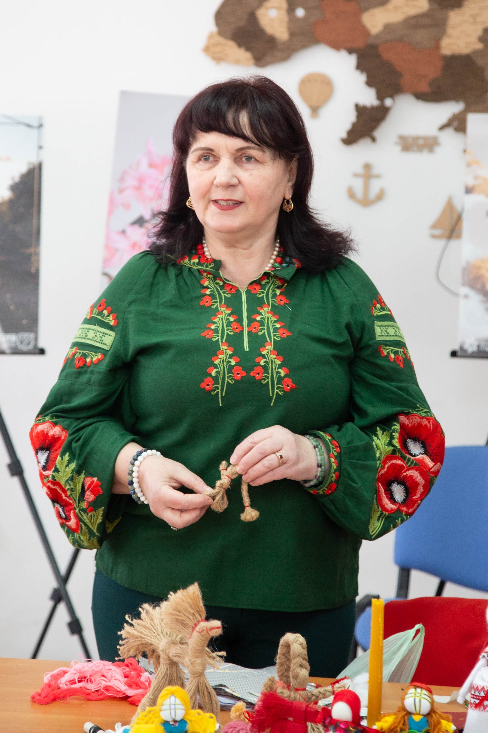 Пані Марія поділилася своїм досвідом створення оберегів для українських воїнів. Молодь слухала авторську поезію майстрині про весну, про жінку, про мир, про красу рідного краю. Під час зустрічі учасники дізналися більше про символіку оберегів, їхнє значення у народній традиції та силу щирого наміру, вкладеного у виріб. Разом із Марією Йосипівною студенти виготовляли обереги, які згодом будуть передані українським військовим як знак підтримки, віри та вдячності.