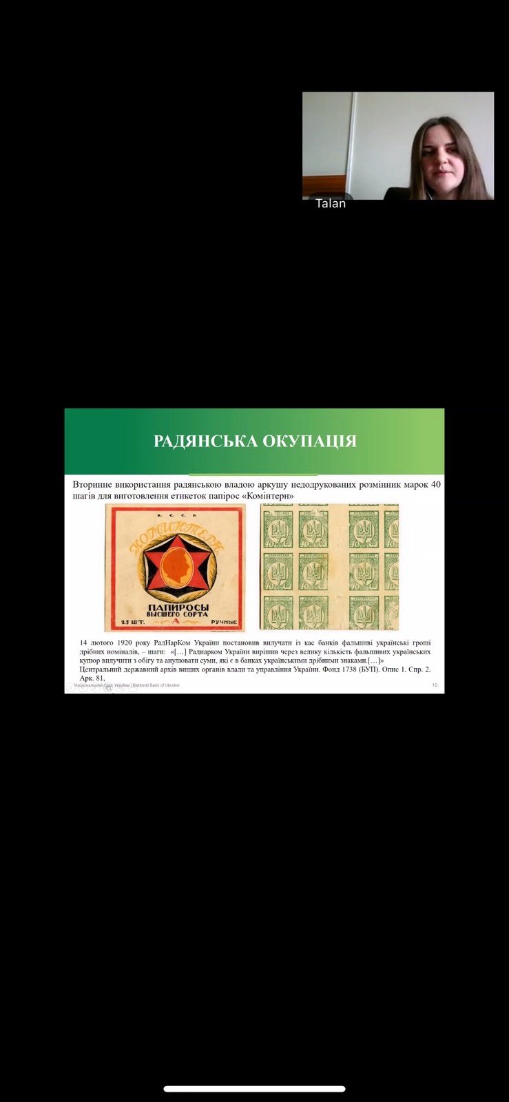 Не менш захопливою стала інформація про події новітньої історії, зокрема грошової реформи 1996 року. Спікерка розкрила маловідомі факти про те, чому під час запровадження гривні «шаг» так і не з’явився в гаманцях українців, поступившись місцем копійці. Учасники детально розібрали економічні та організаційні чинники, що вплинули на остаточну архітектуру грошового обігу того часу, та зрозуміли, як політичні обставини та господарська доцільність диктують фінансовий порядок денний. Цей вебінар дозволив майбутнім фінансистам краще усвідомити роль історичних традицій у розбудові сучасної фінансової архітектури України.