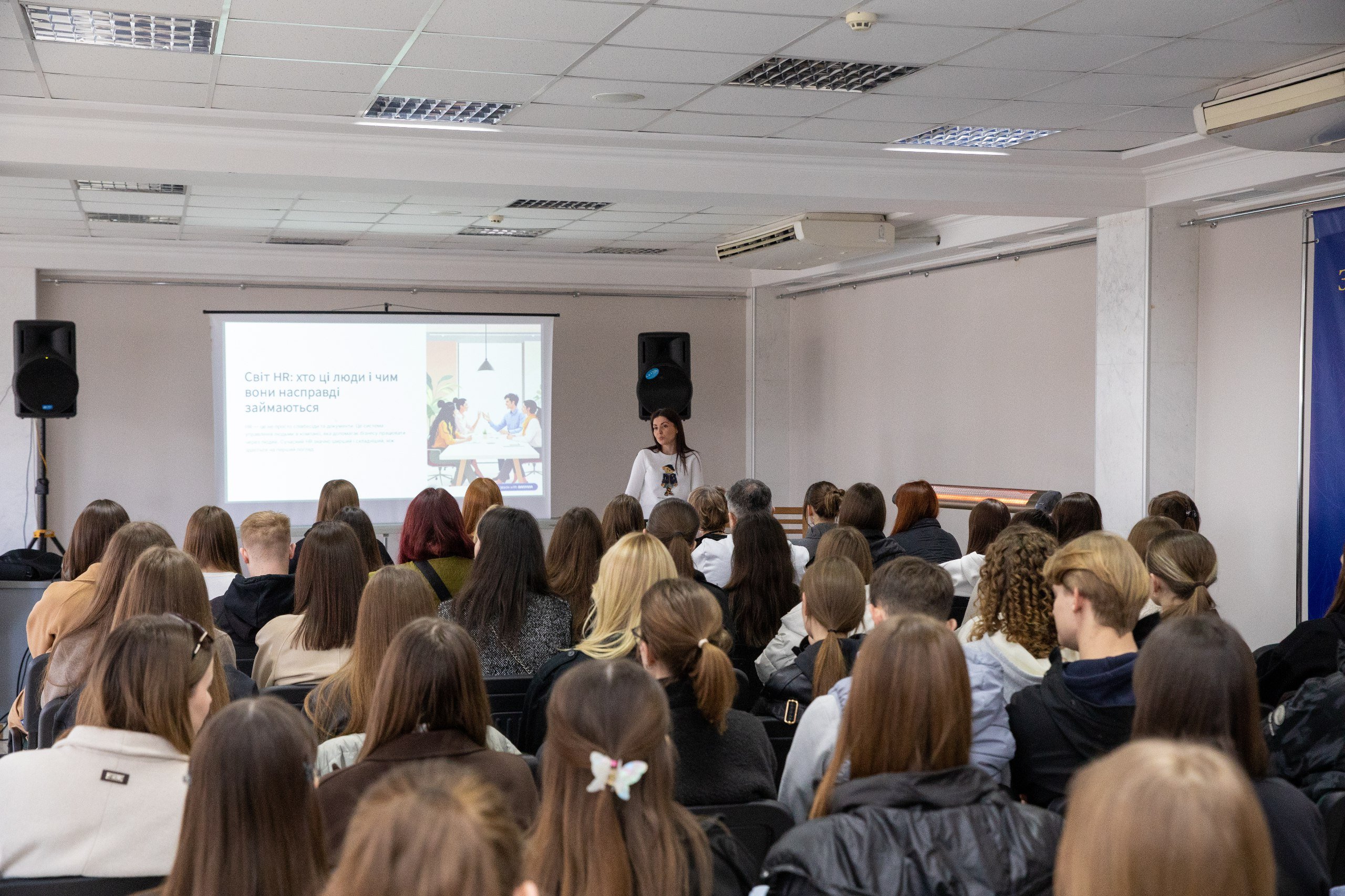 До лекції долучилися студенти освітніх програм «Міжнародний бізнес» та «Міжнародний менеджмент», які отримали цінні практичні знання про сучасні підходи до управління персоналом; роль HR у розвитку компаній; формування ефективних команд; роль soft skills у сучасному бізнес-середовищі.