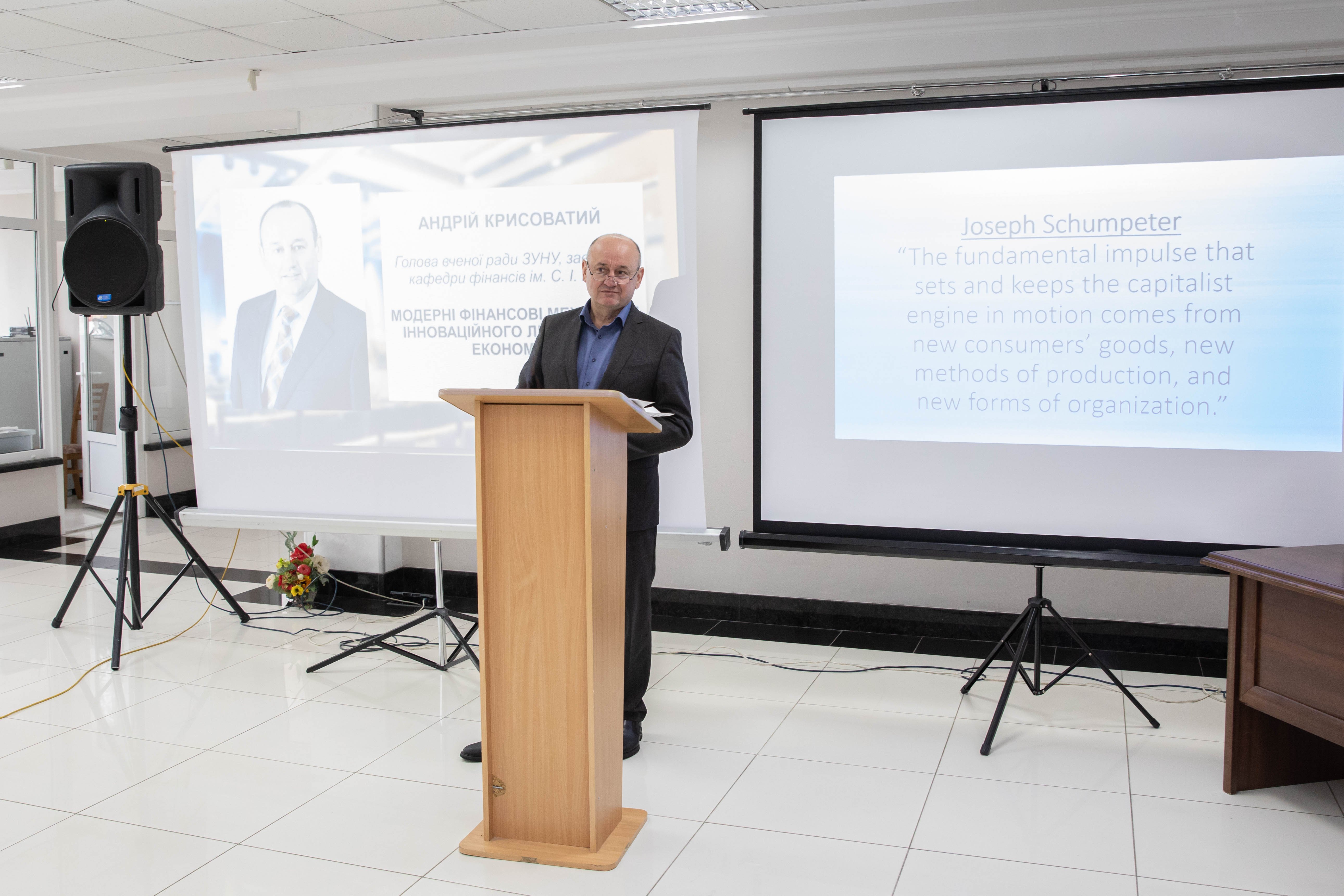 Серед ключових спікерів: Андрій Крисоватий (голова Вченої ради ЗУНУ) – «Модерні фінансові механізми інноваційного лідерства в економіці»; Юрій Дейнека (начальник управління стратегічного розвитку Тернопільської міської ради) – «Стратегічний розвиток міста на засадах інновацій та сталості»; Тетяна Чубак (директорка ТРЦ «Подоляни», Почесний консул Угорщини) – «Бізнес, благодійність і міжнародне партнерство як драйвери розвитку сучасного міста»; Неллі Ухова (Дрезденський технологічний університет) – досвід масштабування інтернаціоналізації через COIL; Б’ярне Реруп Шліхтер (Орхуський університет, Данія) – «United Minds: подолання викликів через співпрацю та навчання»; Світлана Комінко (Технологічний інститут Британської Колумбії, Канада) – «Навчання попри війну: стійкість української освіти»; Олександр Сохацький (ЗУНУ) – «Війна як драйвер трансформації міжнародних економічних відносин».