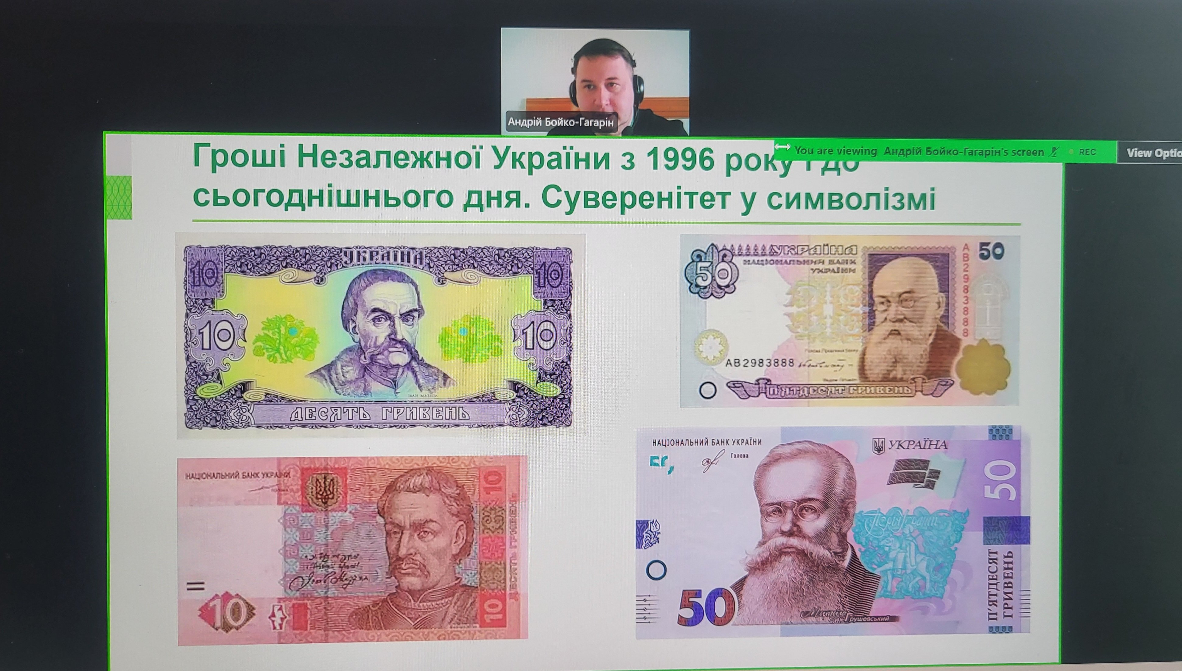 У межах Всесвітнього тижня грошей (Global Money Week) викладачі та студенти факультету фінансів та обліку ЗУНУ активно долучаються до тренінгів, наукових диспутів та вебінарів, які організовують фахівці Національного банку України. Так, 19 березня 2026 року відбувся вебінар «Гроші як засіб комунікації», спікером якого виступив Андрій Бойко-Гагарін – старший зберігач фондів Музею грошей НБУ, а координацію проведення заходу від ЗУНУ забезпечила доцент кафедри фінансів ім. С. І. Юрія, доктор філософії Ірина Гузела.