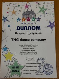 У місті Львові відбувся яскравий та натхненний фестиваль-конкурс «Зірки майбутнього – 2026», який зібрав талановитих дітей та молодь з різних куточків України. Справжньою окрасою заходу став виступ колективу «TNG dance company» відділу творчої самореалізації та виховання Західноукраїнського національного університету, який представив сучасну хореографічну постановку «Shadows of memories».