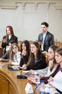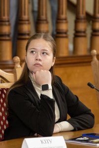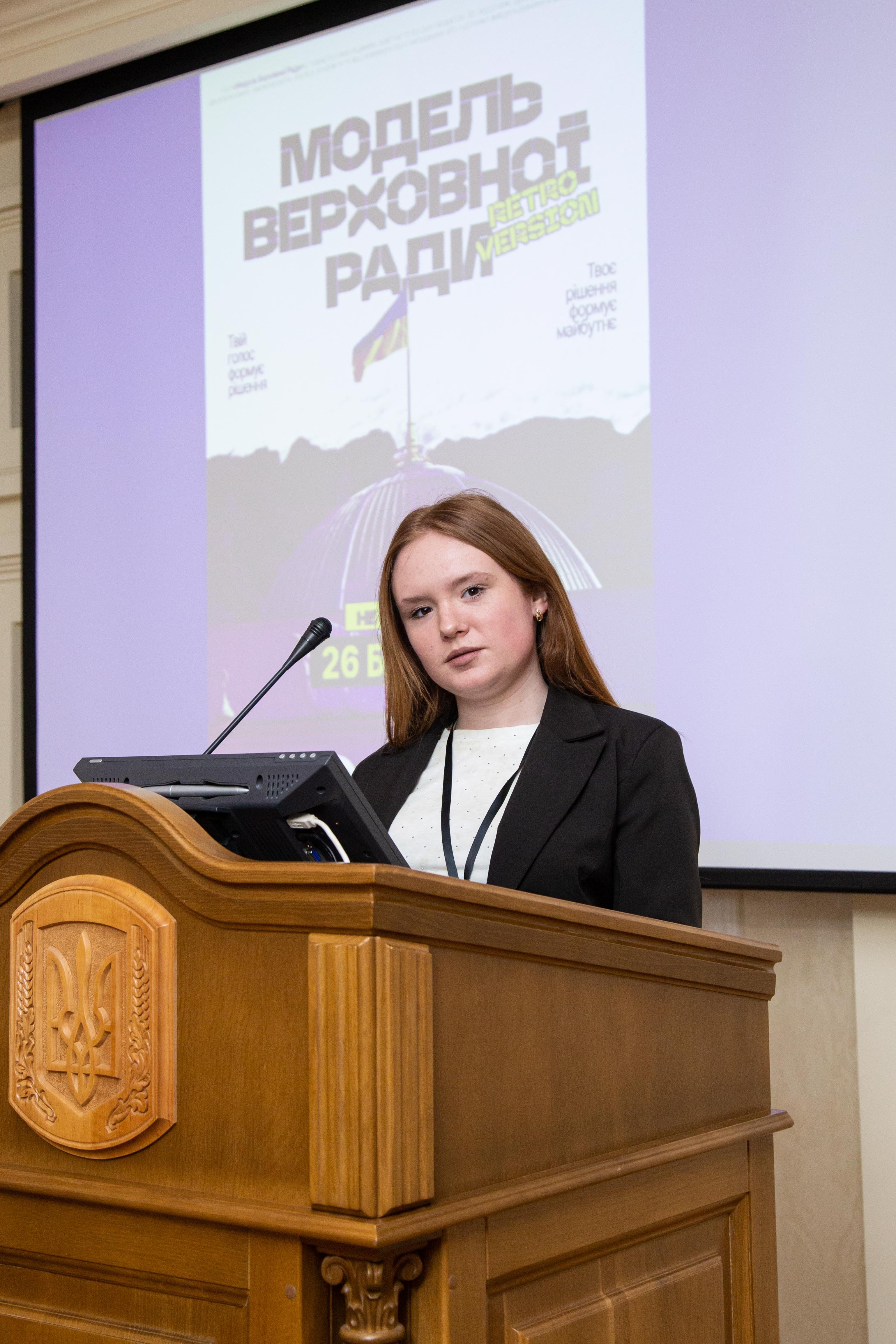 Модератором засідання виступила студентка освітньої програми «Міжнародний менеджмент» Каміла Задорожна, а спікером модельованого засідання – студент освітньої програми «Міжнародні та регіональні політичні комунікації» Тарас Ольховецький.