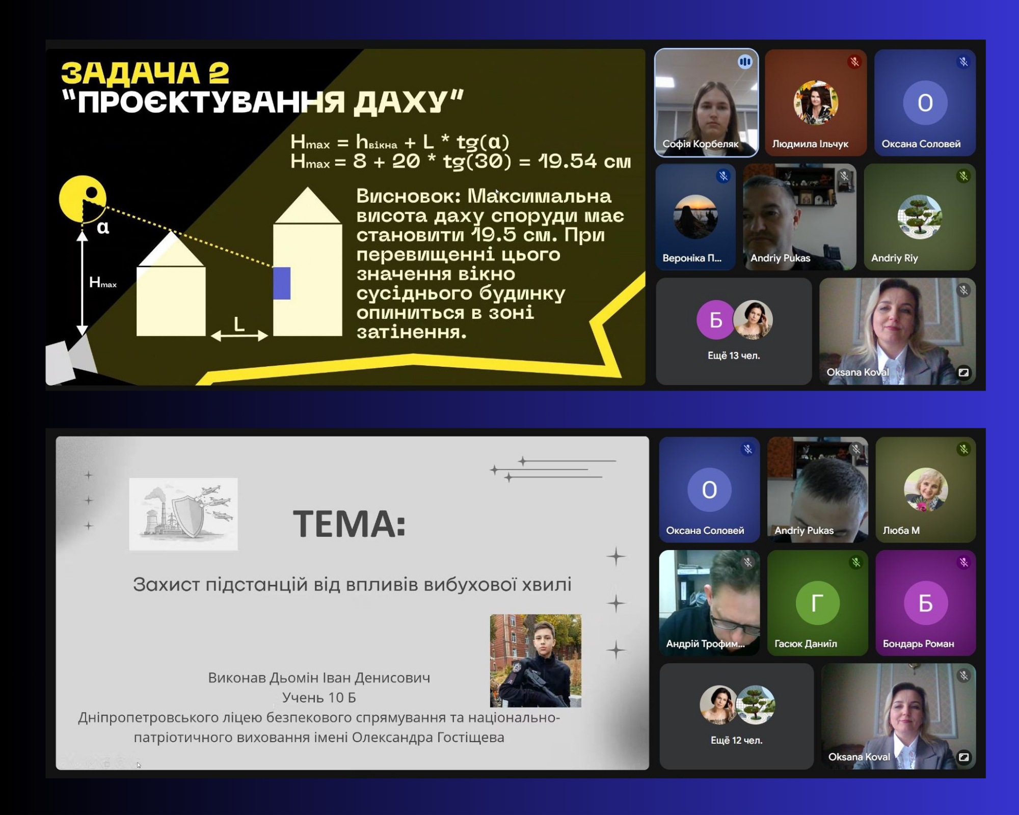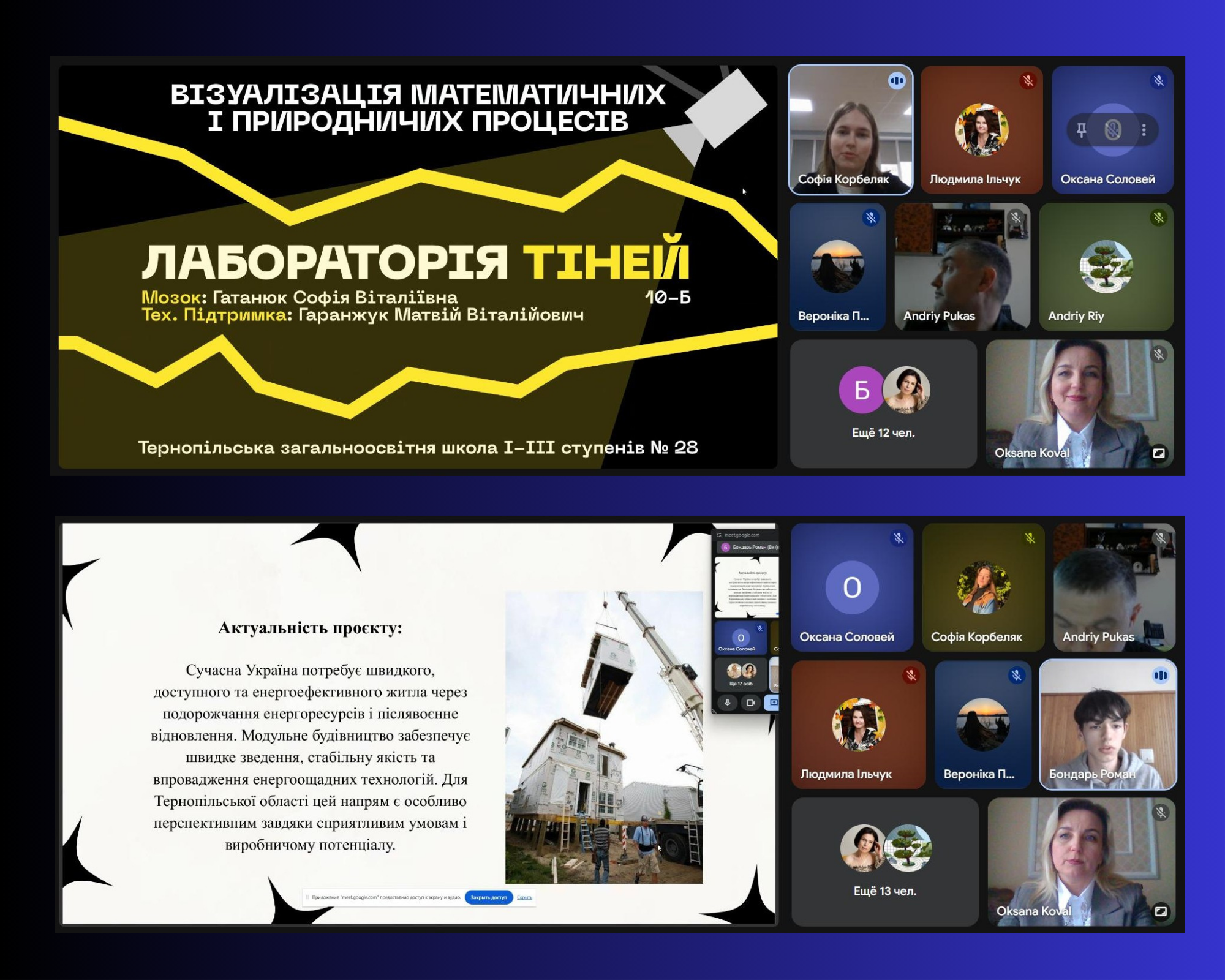 Учасники продемонстрували високий рівень підготовки, представивши інноваційні проєкти, що поєднують математику, технології та креативне мислення. Серед розробок – математичні моделі, рішення з використанням елементів доповненої реальності в освітньому процесі, а також дослідження можливостей застосування штучного інтелекту для покращення міського середовища. Тематика проєктів охоплювала візуалізацію математичних і природничих процесів, екодизайн освітнього середовища, моделі енергозбереження за допомогою штучного інтелекту для розвитку міста, а також креативні інженерні рішення юних винахідників.