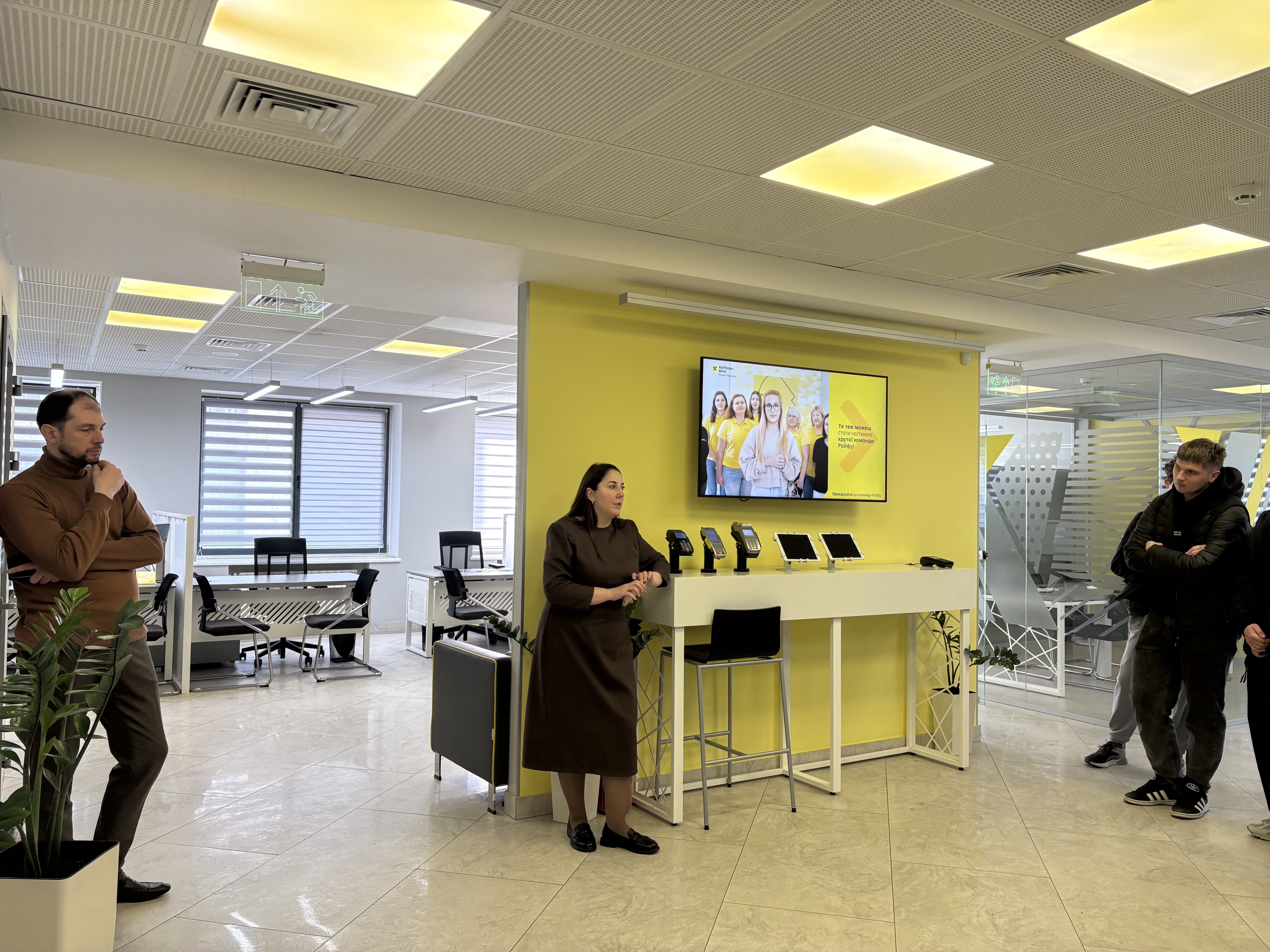 2 квітня 2026 р. для студентів освітніх програм «Фінанси» та «Митна і податкова справа» факультету фінансів та обліку Західноукраїнського національного університету в рамках вивчення навчальної дисципліни «Гроші та кредит» було організовано практико-орієнтований тренінг, який відбувся у Базовому відділенні «Райффайзен Банку» у м. Тернополі. Організатором заходу від університету виступив професор кафедри фінансів ім. С. І. Юрія Дзюблюк Олександр Валерійович. Організаторами заходу від банку виступили Табатадзе Ольга Арменівна – керівник з роздрібного бізнесу Базового відділення «Райффайзен Банку» м. Тернополя та Шкільняк Костянтин Михайлович – керівник з продажу продуктів ключовим клієнтам бізнес банкінгу «Райффайзен Банку» Тернопільської області та Чернівецької області.