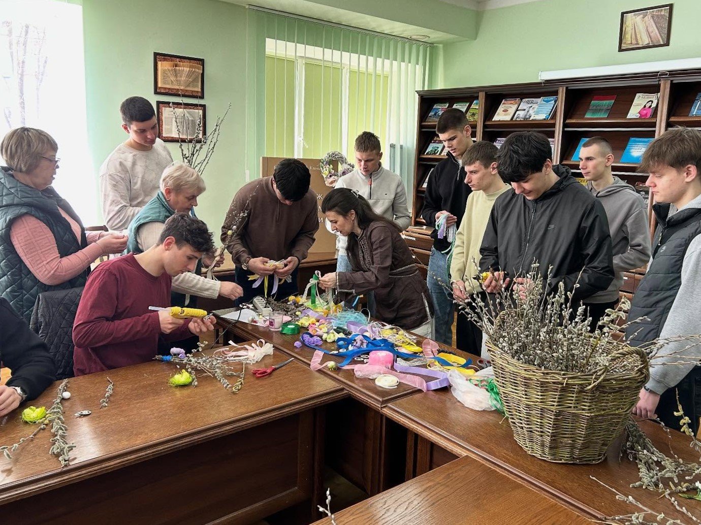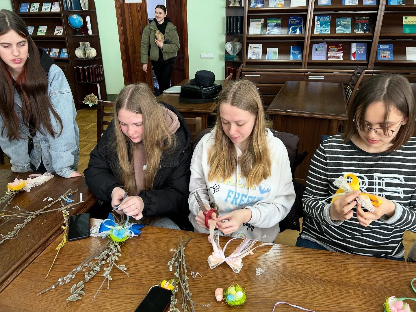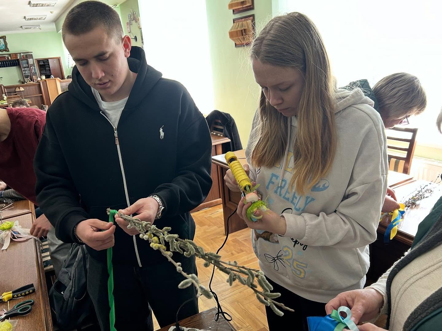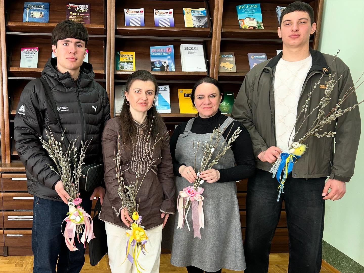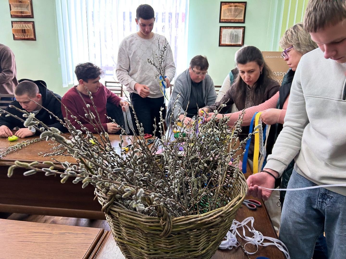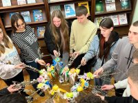 У бібліотеці ім. Л. Каніщенка ЗУНУ відбувся майстер-клас із декорування вербових гілочок, який провела доцент кафедри агробіотехнологій Олена Чернишенко. Студенти напередодні Вербної неділі власноруч створювали святкові композиції, щоб освятити їх у церкві й зберегти як обереги. Усі навчилися робити бантики зі стрічок, прикрашали вербові гілочки гніздами з яєчками, курчатами, весняними квіточками та іншою великодньою атрибутикою. Атмосфера була щира й натхненна, кожен отримав естетичну насолоду та нові навички.