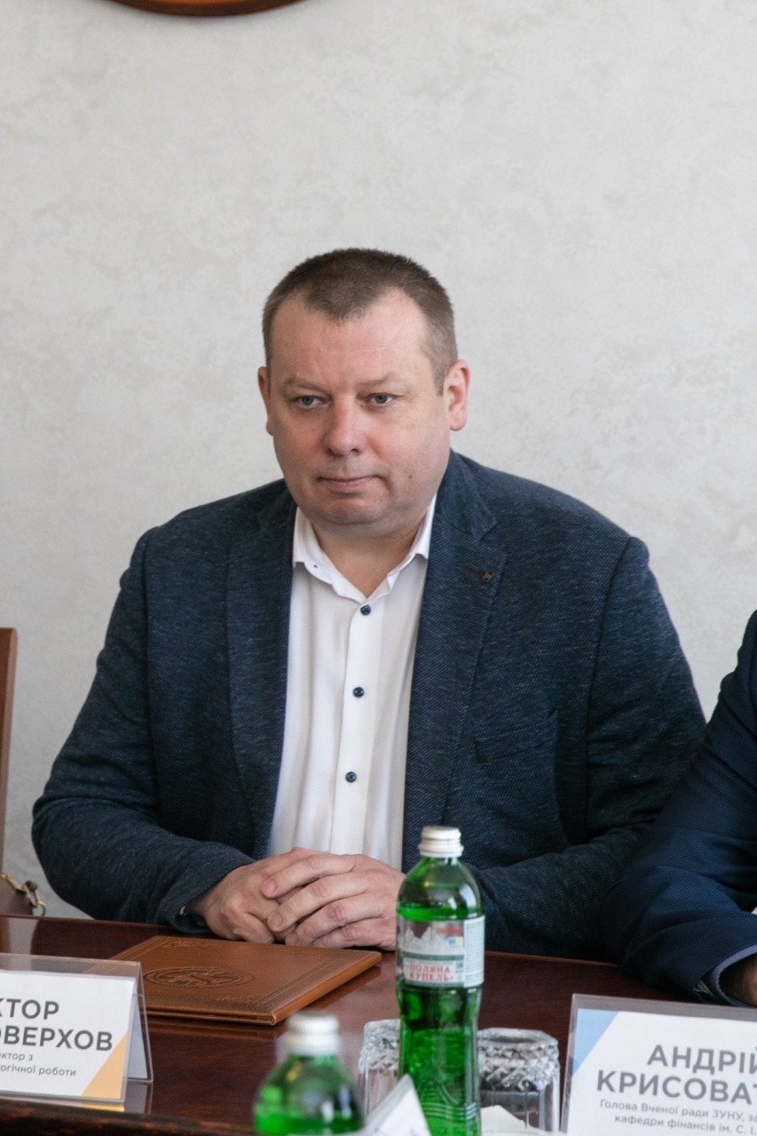 До присутніх звернувся проректор з науково-педагогічної роботи ЗУНУ Віктор Островерхов, який наголосив на важливості поєднання теоретичних та практичних знань, співпраці між науковцями та фахівцями Державної митної служби України у контексті впровадження нових професійних стандартів. Він підкреслив, що імплементація стандарту «Інспектор митний» стане потужним дієвим інструментом для модернізації навчальних програм та підвищення конкурентоспроможності випускників університету.