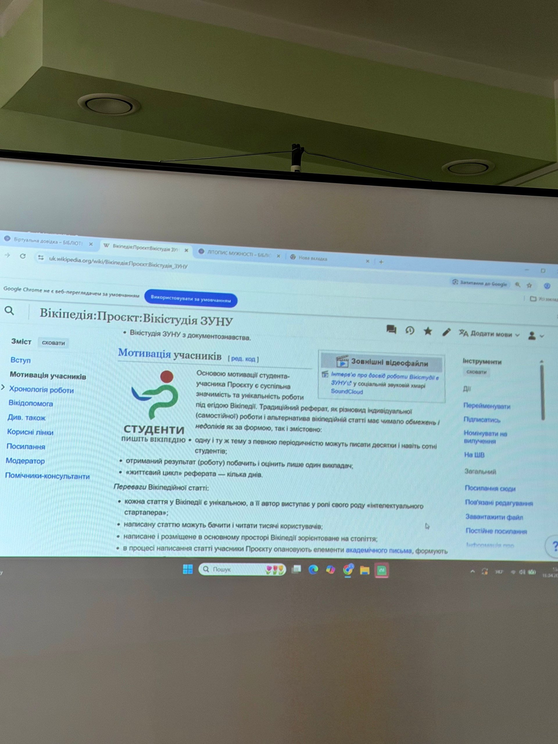 Водночас у межах вікіпроєкту «Вікістудія ЗУНУ» студенти долучаються до створення й редагування енциклопедичних статей, зокрема про українських захисників. Працюючи з відкритими джерелами, вони опановують принципи енциклопедичного письма, вчаться дотримуватися стандартів академічної доброчесності, а також набувають практичних навичок відповідального наповнення інформаційного простору.