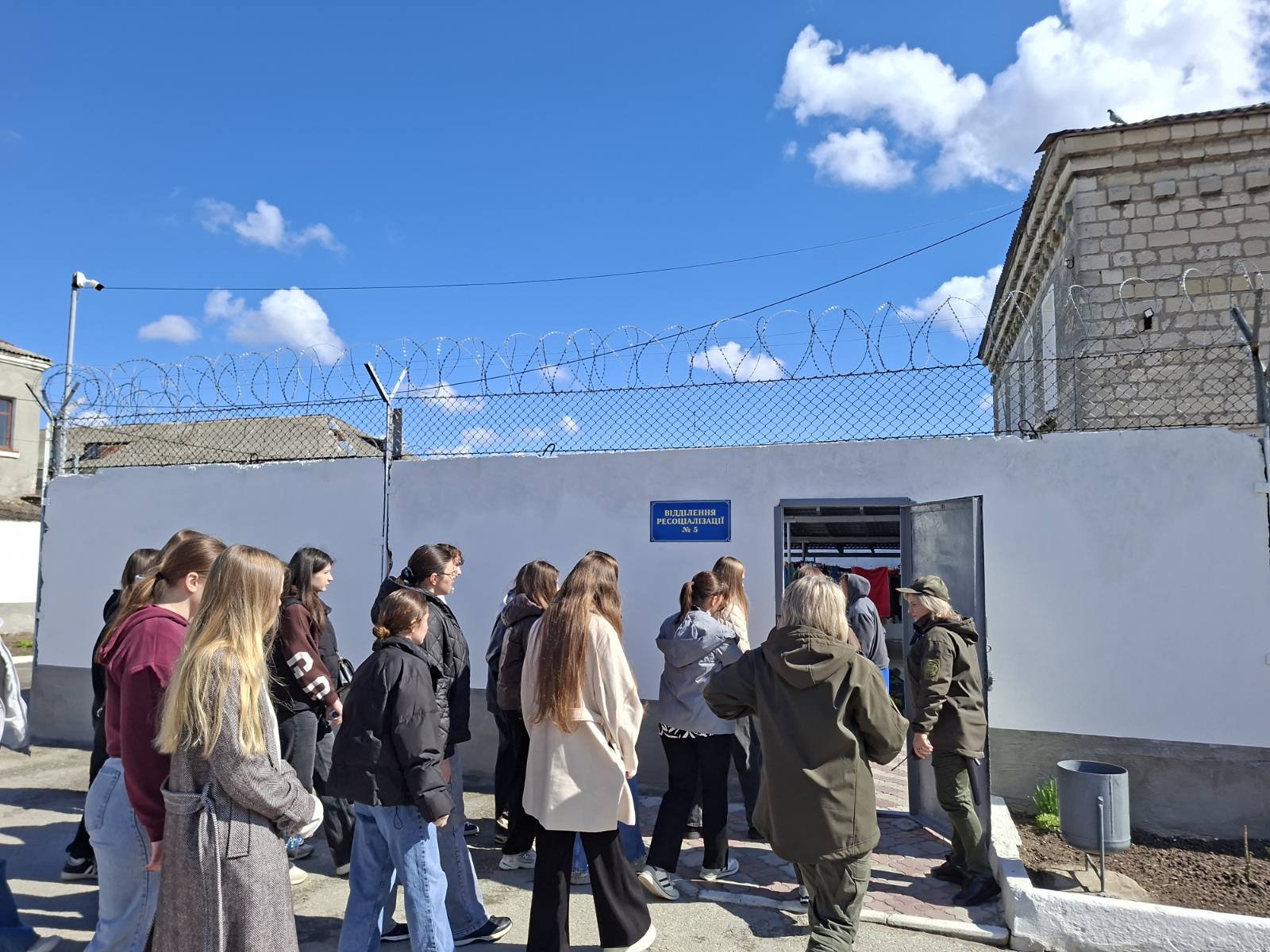 Під час відвідування колонії майбутні фахівці ознайомилися з побутом засуджених та передали їм смаколики від фірмового магазину "ТерА". Студенти побували на підприємстві установи, у гуртожитках, клубі, бібліотеці, їдальні, навчальних класах, а також у кімнаті психоемоційного розвантаження. Особливу увагу було приділено змісту соціально-виховної та психологічної роботи, яку щоденно здійснює персонал колонії.
