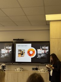 Окремо було наголошено на важливості комплексного підходу до розробки продуктів, який включає дослідження, аналітику ринку, створення прототипів та їх тестування. Спікер підкреслив, що процес розробки є циклічним і передбачає постійне вдосконалення продукту. Учасники заходу мали можливість ознайомитися з інноваційними розробками компанії, зокрема з медичним роботом Lea, який сприяє покращенню мобільності людей із різними захворюваннями та є прикладом практичного застосування сучасних технологій у сфері охорони здоров’я.