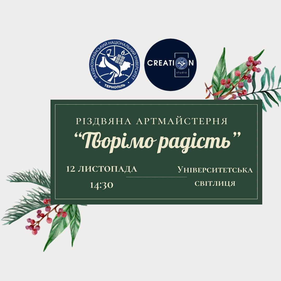 Колектив відділу творчої самореалізації та виховання запрошує на відкриття різдвяної артмайстерні «Творімо радість»